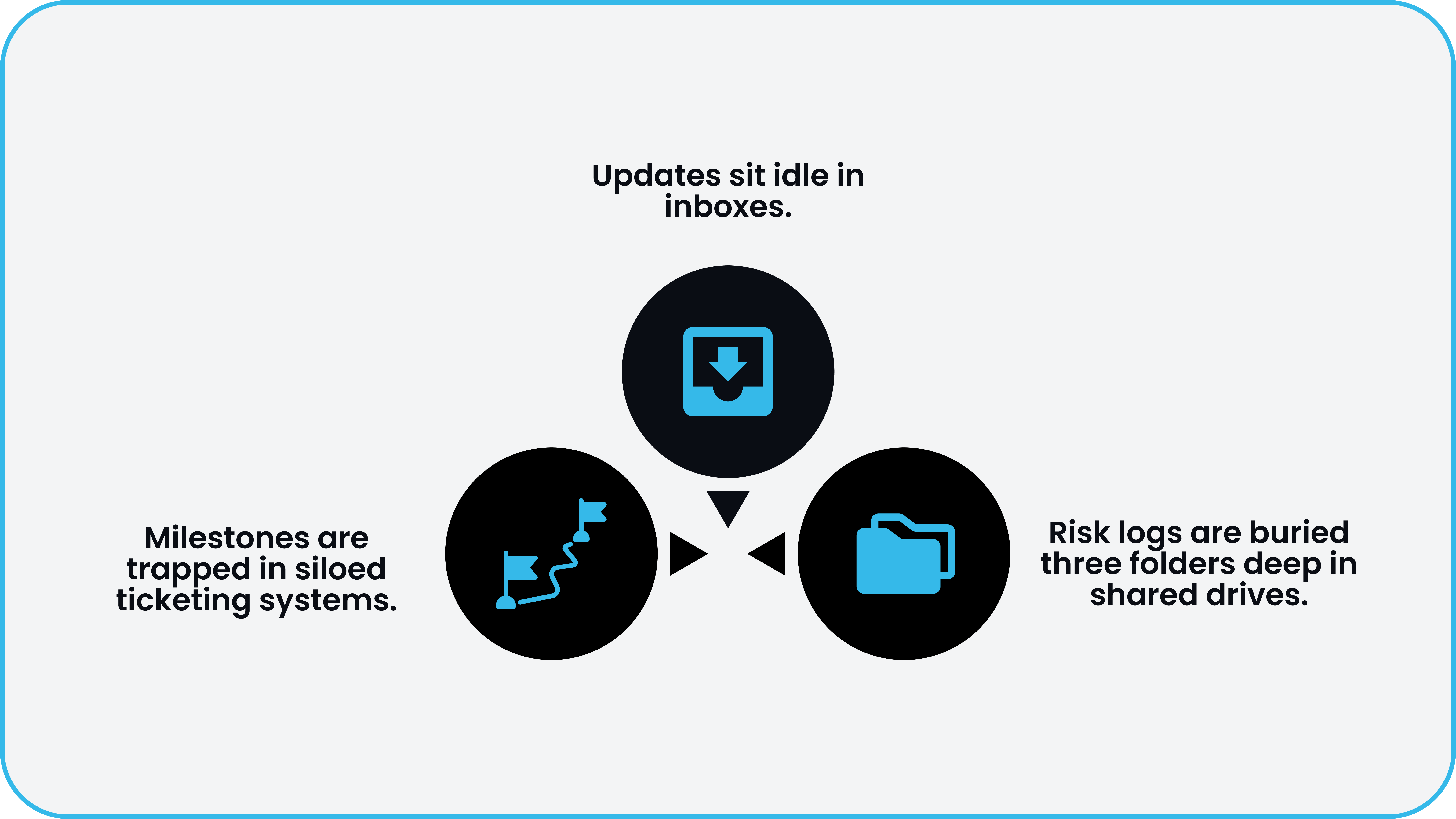 - Risk logs are buried three folders deep in shared drives.